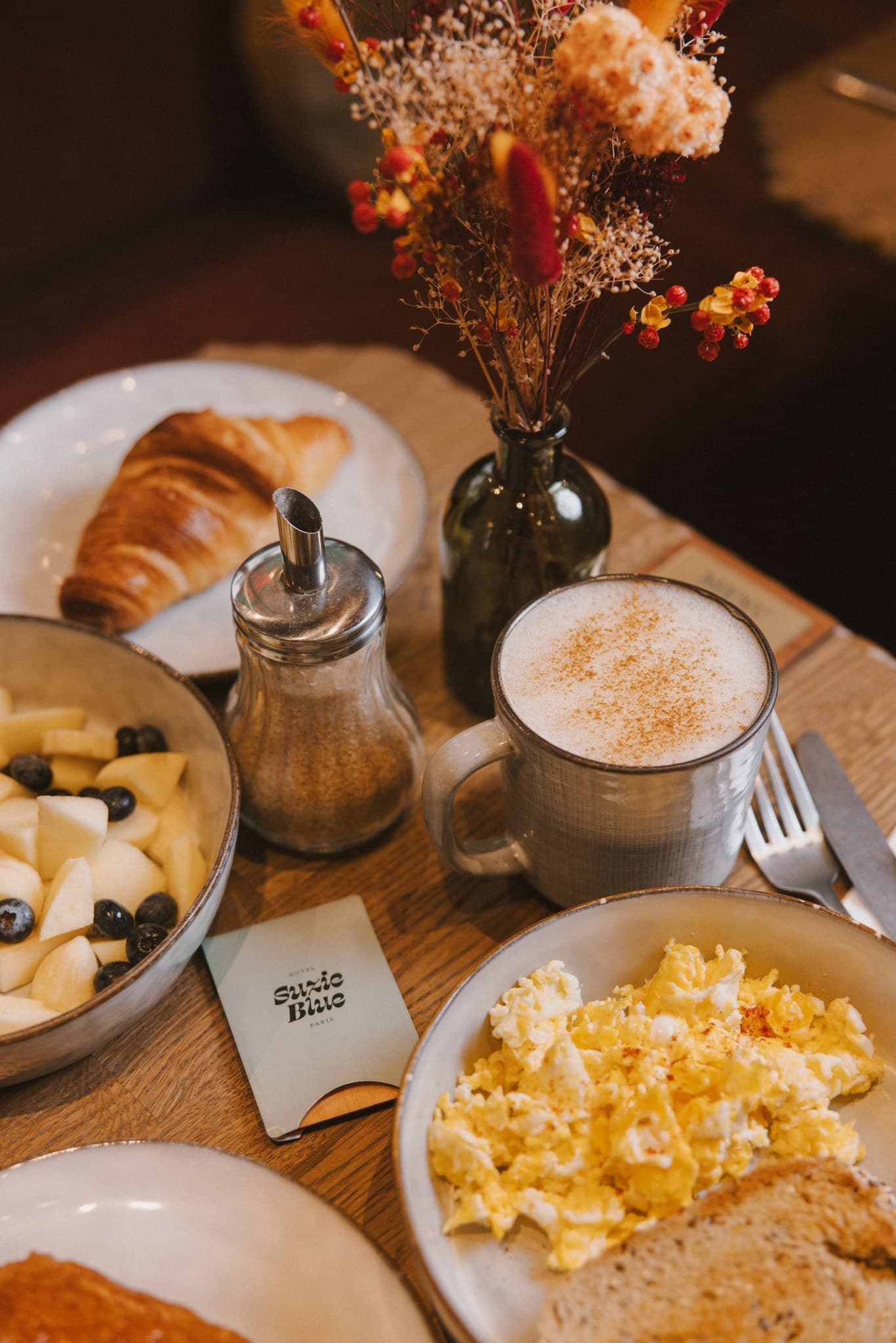 Le coffee shop Suzie Blue accompagne tous les débuts de journée avec un menu petit-déjeuner savoureux, servie jusqu’à 12h, dès 7h30 en semaine et à partir de 8h le week-end. Café fumant, œufs brouillés moelleux, granola maison, croissants dorés, jus fraîchement pressé… Le tout dans une ambiance feutrée, baignée de lumière naturelle, où l’on ralentit volontiers le tempo. Un petit-déjeuner à Paris 3e qui met de bonne humeur, au cœur du Marais.